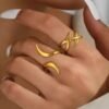 Designed for daily wear, the Open Horn Ring seamlessly blends with any look, whether casual or formal. Its 18k gold-plated finish lends a touch of refined elegance to your outfit, while its durable, anti-tarnish qualities make it a practical choice for everyday use. The hypoallergenic and waterproof features add to its list of benefits, making it a ring you can rely on not just for its aesthetic appeal but also for its resilience and comfort. From work meetings to weekend outings, this piece ensures you never have to compromise between style and functionality.