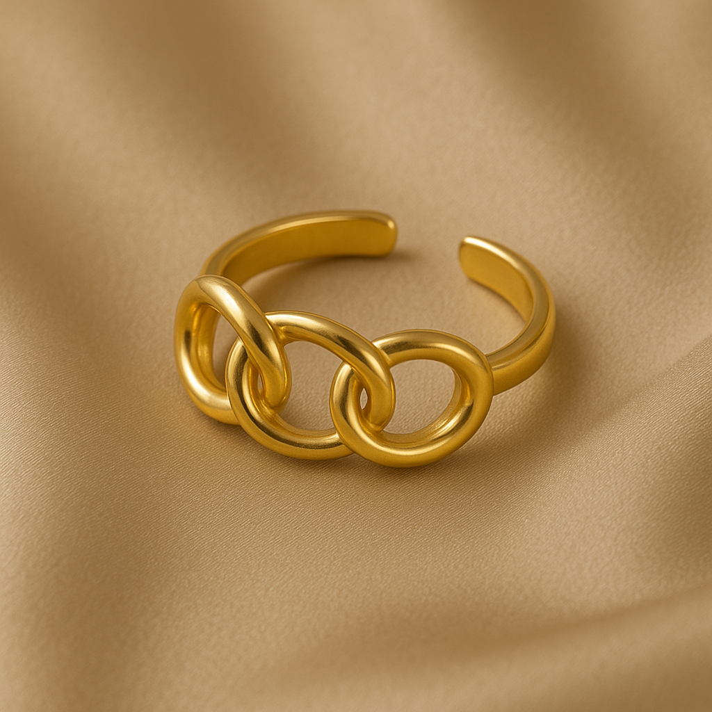 Made with 18k gold plating, it delivers the luxurious appearance of fine gold while remaining practical and affordable for everyday use. Its sleek, minimalist design seamlessly pairs with other jewelry or stands out as a statement piece all on its own. Elevate your style effortlessly with the ring.