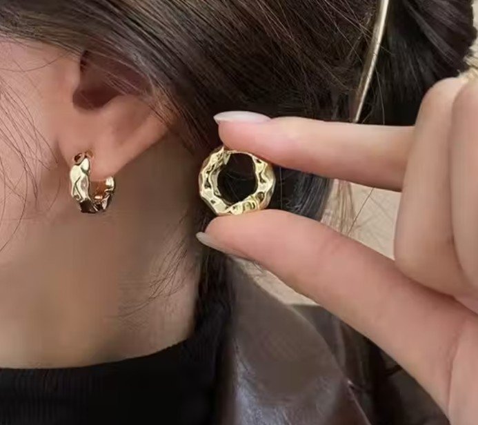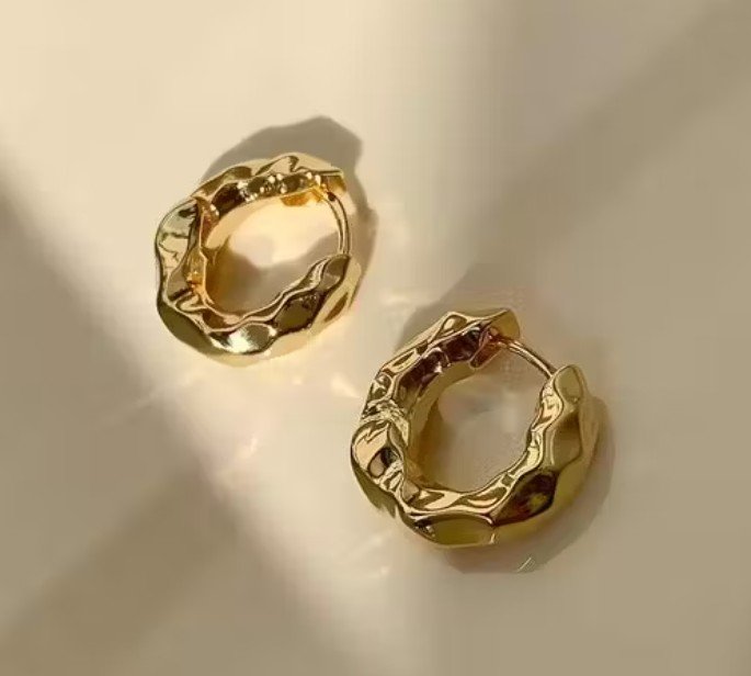 The 18k gold plating provides a luxurious finish, ensuring they look and feel premium. Their high-quality craftsmanship is designed to withstand daily wear, providing you with stylish confidence without compromising on reliability. With Textured Gold Hoops, you’re investing in earrings that withstand both time and the elements.